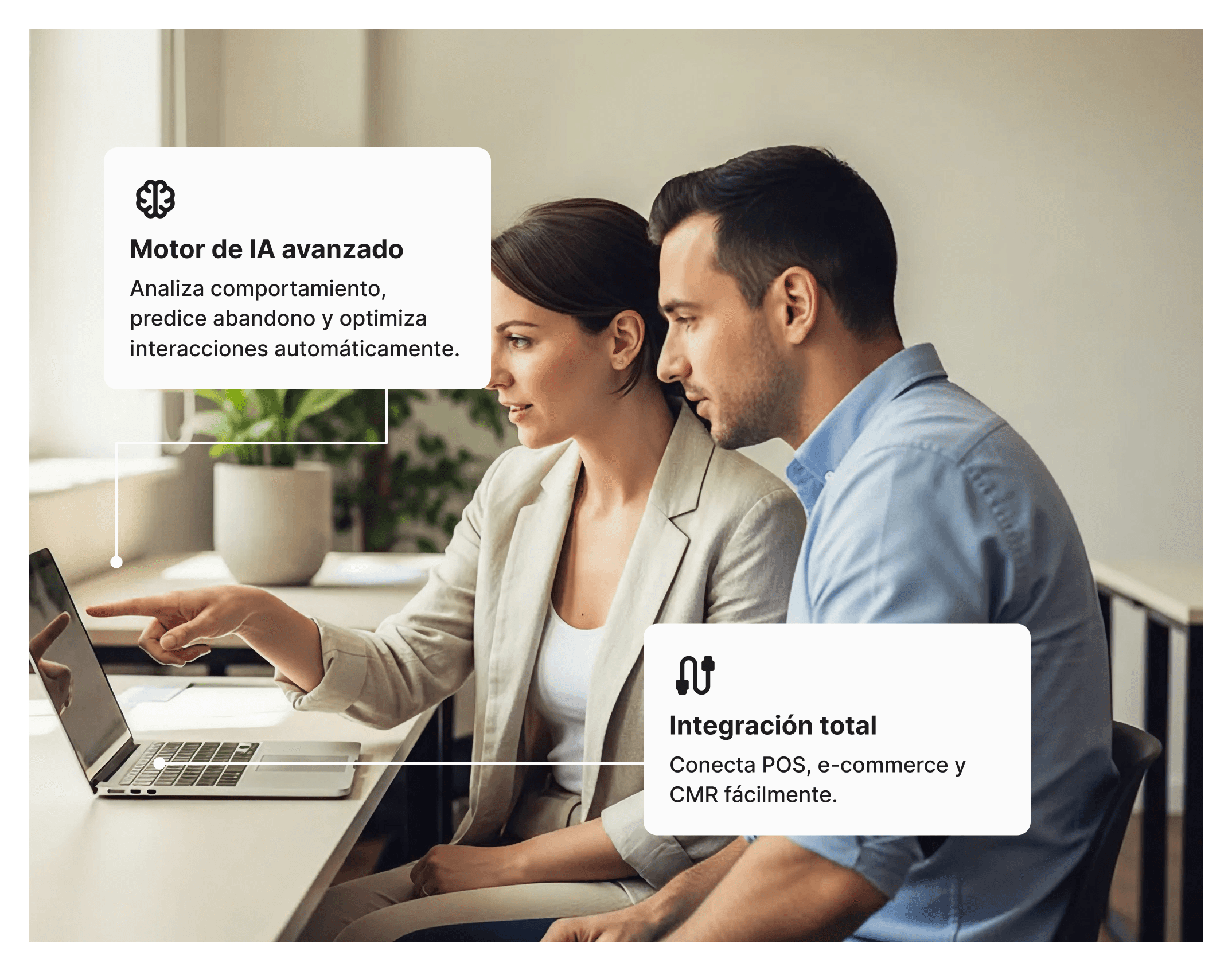 Ofrecemos una solución de marca blanca que analiza el comportamiento real, predice el abandono y optimiza cada interacción.