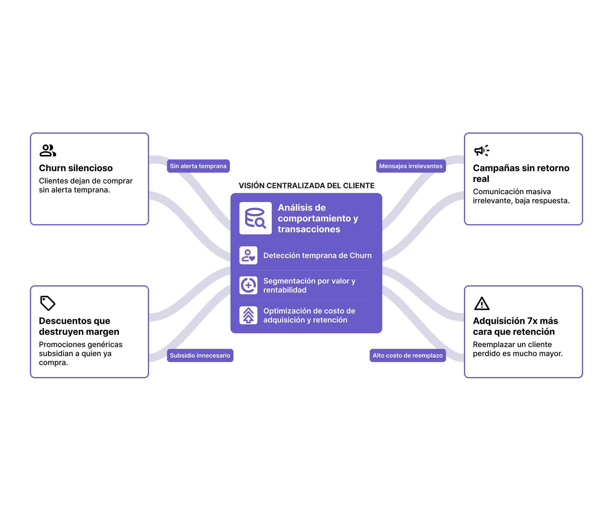 Sin un sistema de fidelización inteligente, cada mes pierdes clientes valiosos, subsidias compras que ya ibas a recibir y desperdicias presupuesto en comunicación que no genera retorno.